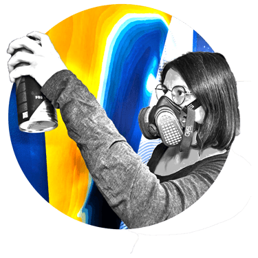 Elena, a professional scenographer, translates her passion for light and color into mural art. Inspired by theater, she transforms spaces into true artistic stages, bringing beauty and expressiveness to every wall.